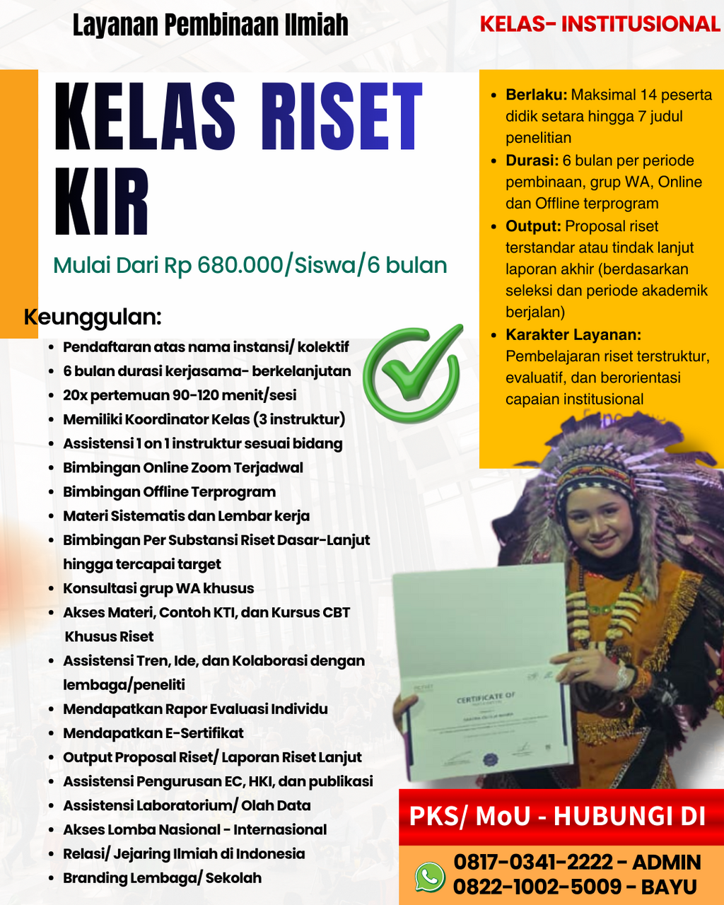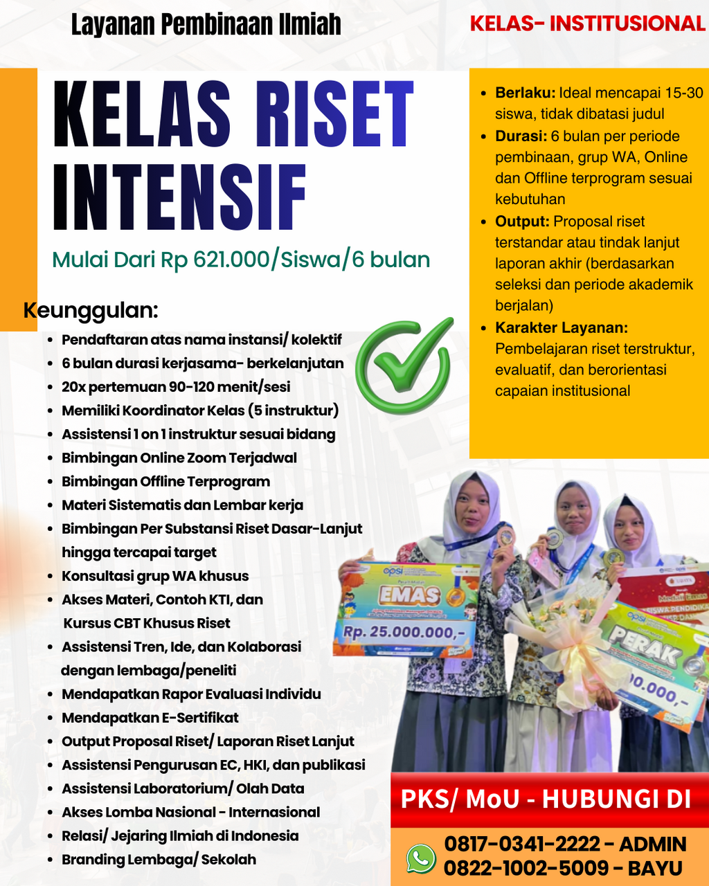 Program ini memberikan nilai tambah strategis bagi peserta didik dalam membangun rekam jejak riset yang kredibel dan bertanggung jawab.