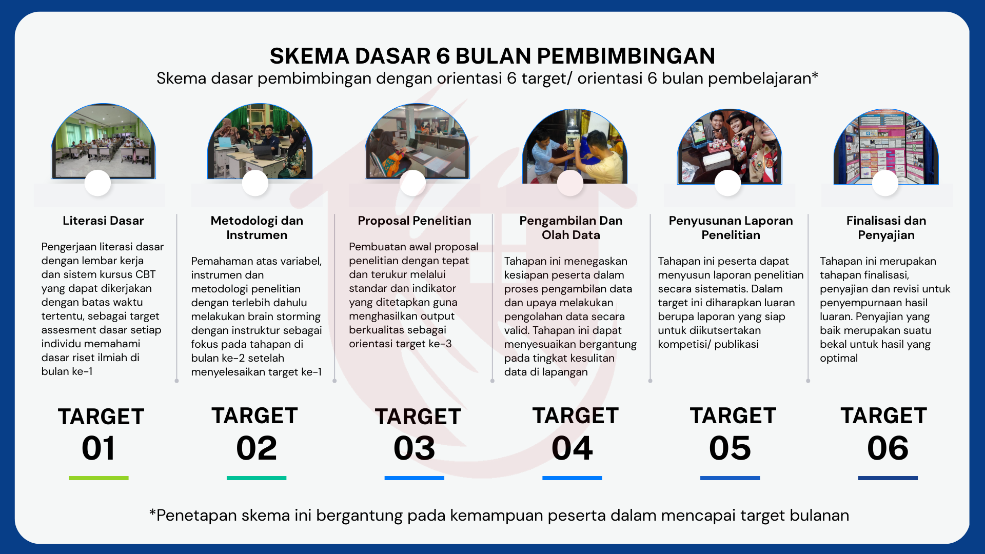 Program ini menempatkan peserta didik sebagai subjek utama penelitian, dengan pendampingan mentor yang bersifat fasilitatif, reflektif, dan berorientasi pada penguatan metodologi serta etika riset.
