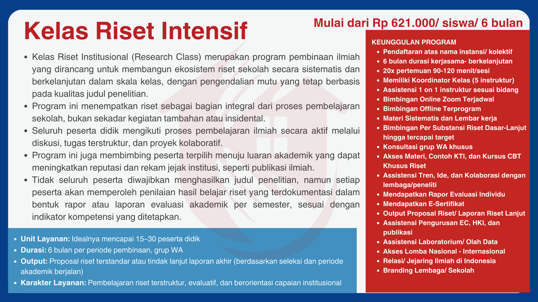 PROGRAM KELAS RISET INTENSIF (15-30 SISWA) UNGGULAN