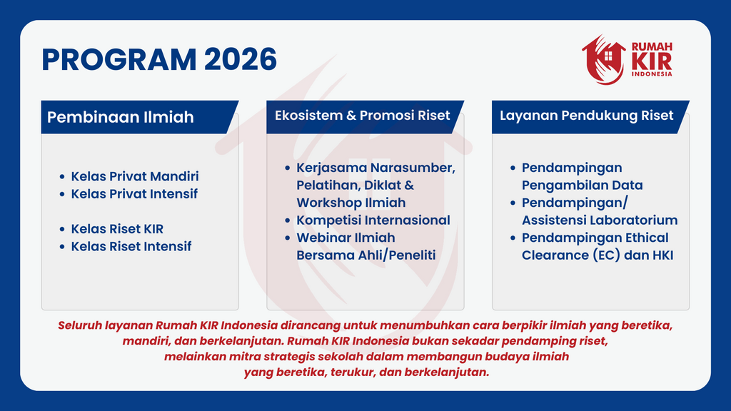 Mulai Rp 680.000 per siswa, dengan minimum 4 siswa/ 2 Judul dan maksimum 14 siswa/ 7 Judul. Durasi pembinaan intens selama 6 bulan.